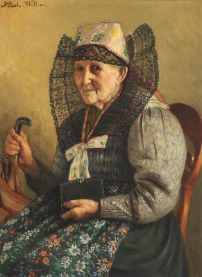 A portrait of an elderly woman from Swabia in a folk costume