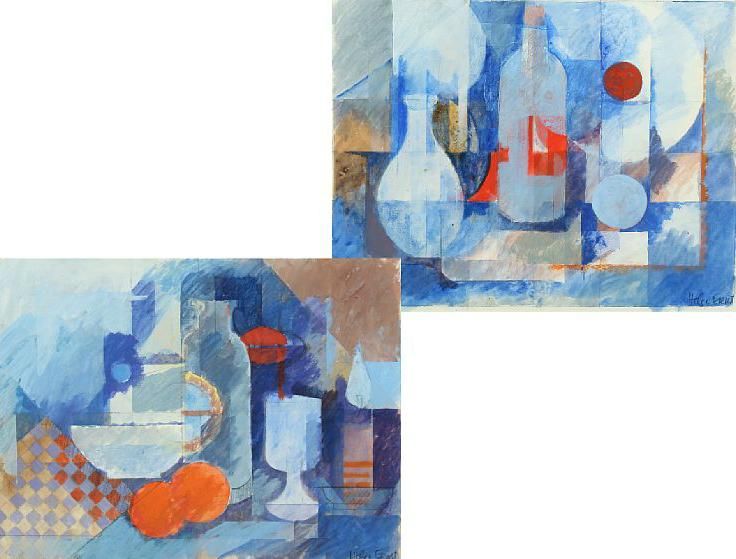 Two still lifes in blue and orange