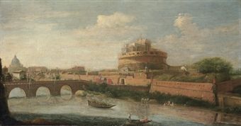 Rome: A view of the Tiber, with the Castel Sant'Angelo and St. Peter's beyond