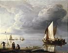 | SMALL DUTCH VESSELS IN A CALM, MEN COLLECTING MUSSELS ON THE SHORE | |