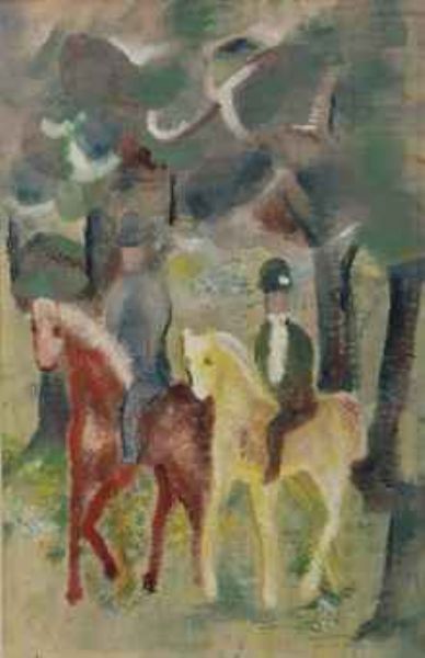 | Twee ruiters in bos naar links rijdend | |