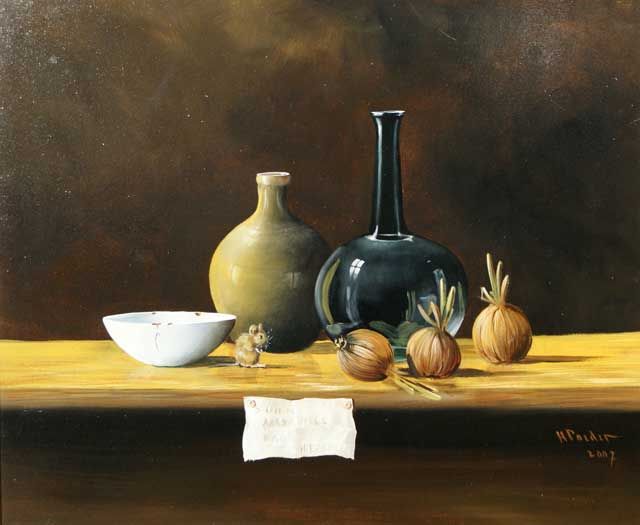 Stillife with onion and mouse