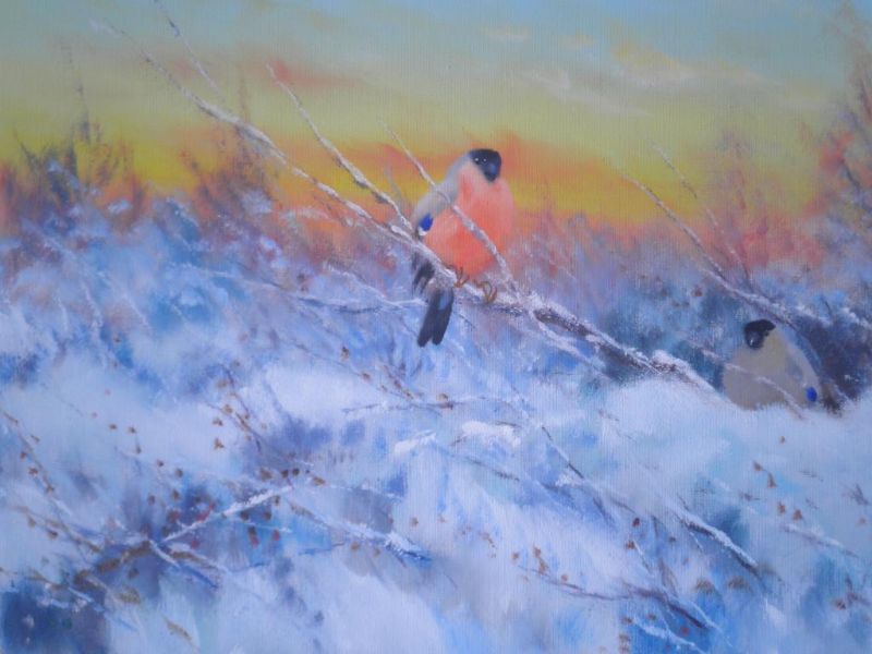 Swedish birds in winter landscape