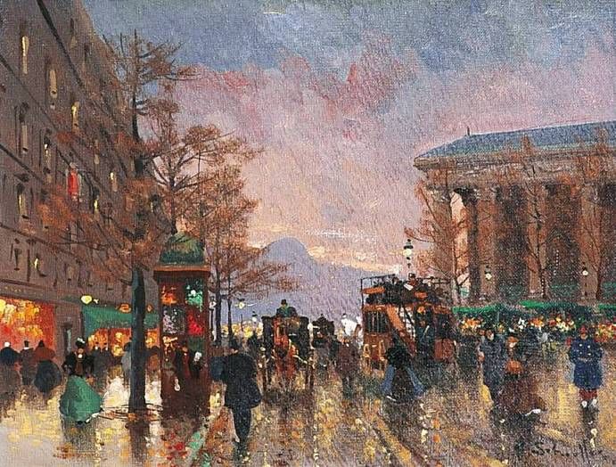 PARIS, LA PLACE DE LA MADELEINE À LA TOMBÉE DU JOUR