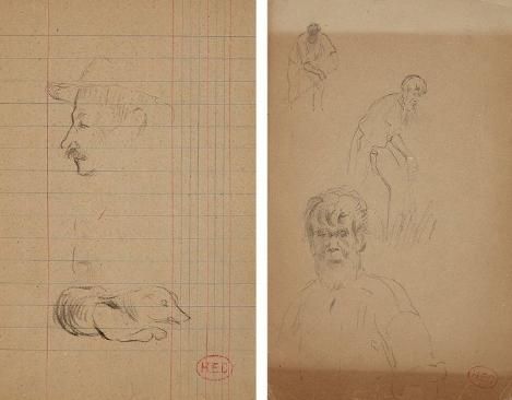 Etude d'un chien et d'un visage d'homme de profil, études d'un homme barbu