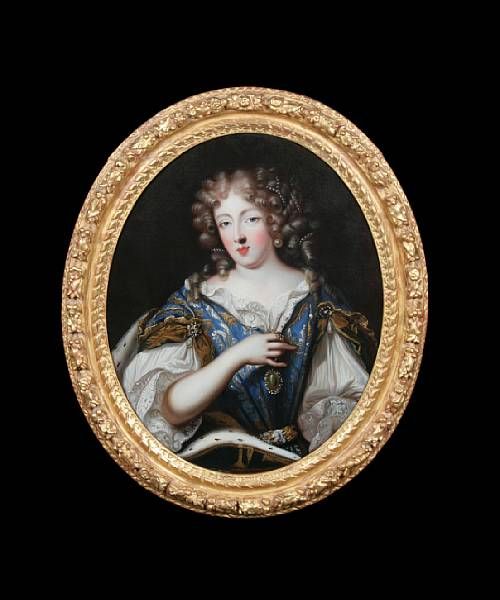 | Portrait of a noblewoman, possibly Louise de la Vallière, half-length in a blue embroidered dress and white chemise, with an erm | |