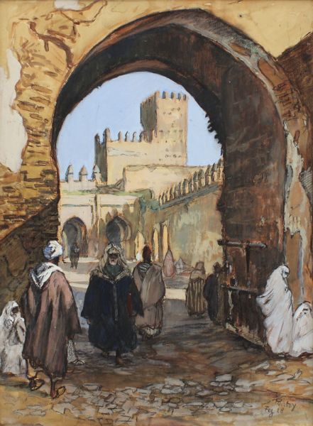 ''Fez'', Orientalist street scene with figures