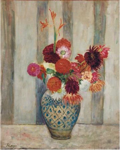 Dahlias Dans un Vase Persan