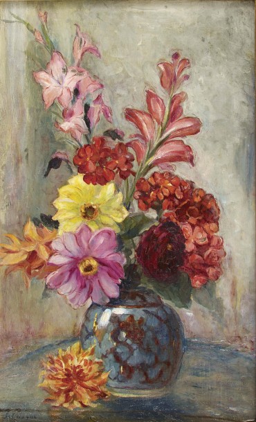 GLAIEULS ET DAHLIAS DANS UN VASE