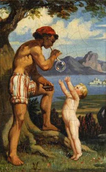 Napolitain faisant une bulle de savon pour un enfant