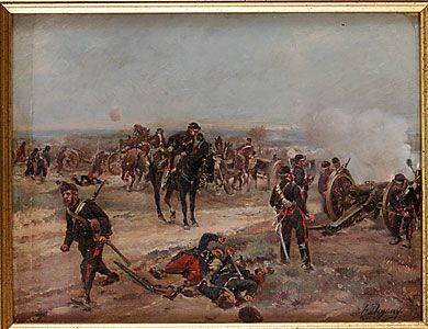 Batterie d'artillerie, attaquant un village aux environs de Paris