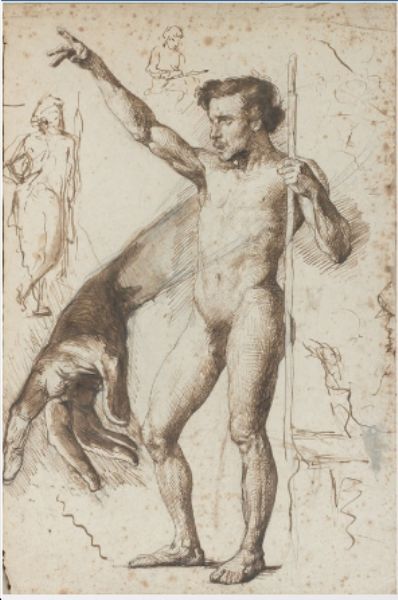 Feuille d’étude recto-verso avec une académie d’homme, une étude
