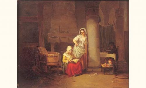 La lecture dans un intérieur paysan