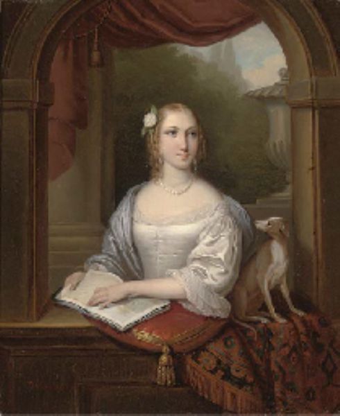 A lady reading at a casement