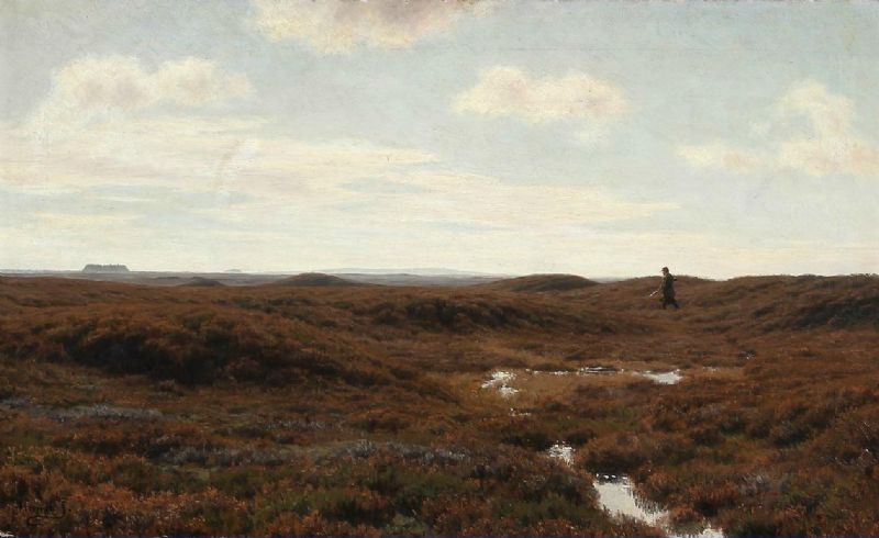 Danish moorland view with a hunter.