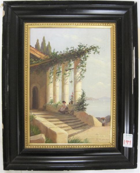 | Italian landscape with figures of women, flowers and a villas | |