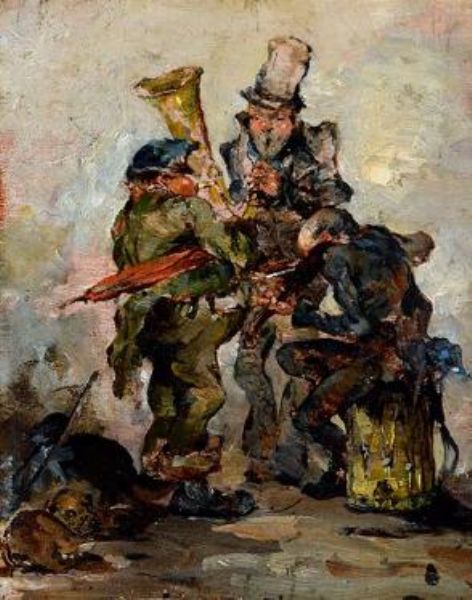 Three Musicians with a Dog