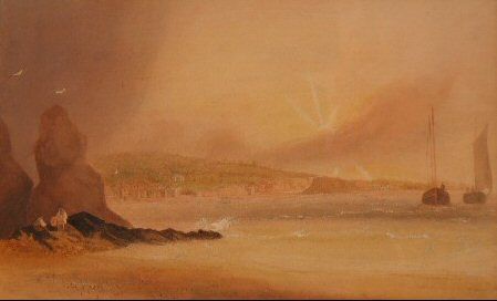 coastal town (possibly Plymouth) at sunset