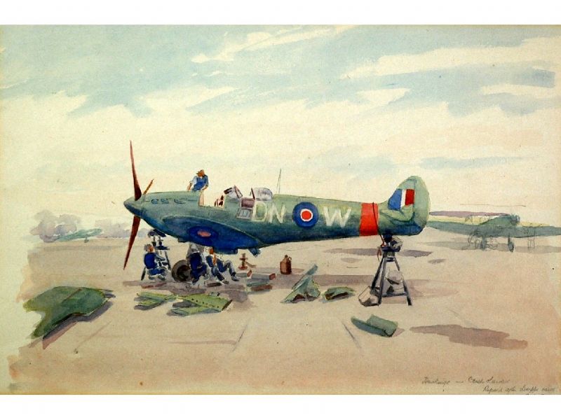 | 'Hawkinge - Crash landed, Repairs after Dieppe raid, Sept 1942' | |