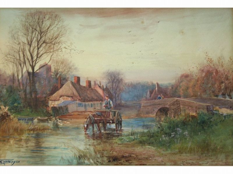 THE WAGGONER'S REST; BOATS BY A RIVER, A COTTAGE BEYOND