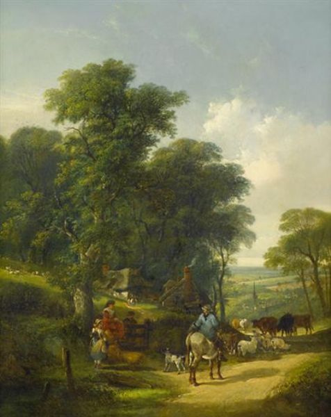 A HERDSMAN CATTLE (SIC), PASSING GIRL AND CHILDREN