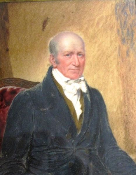 | Portrait Miniature of¦Thomas Andrew Knight FRSA, ¦seated half-length, wearing a¦dark coat and white ruff, on ivory,¦together wit | |