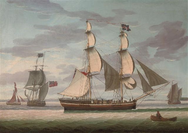 A merchant brig in two positions on the Solway Firth