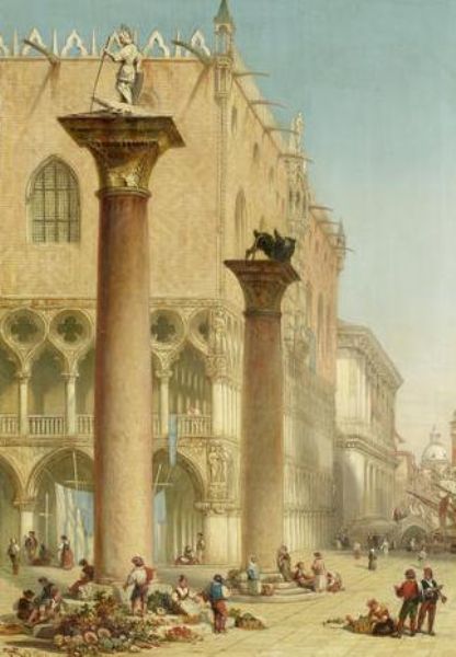 Flower market in Piazzetta San Marco by the Column of St. Theodore, Venice