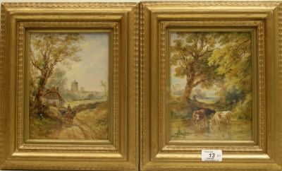 Country scenes with horse and cart & Cattle watering