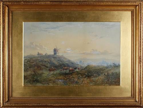 | Landscape with Windmill on the horizon and cattle herded by a man on horseback | |