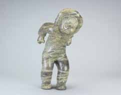 A green soapstone Inuit child playing