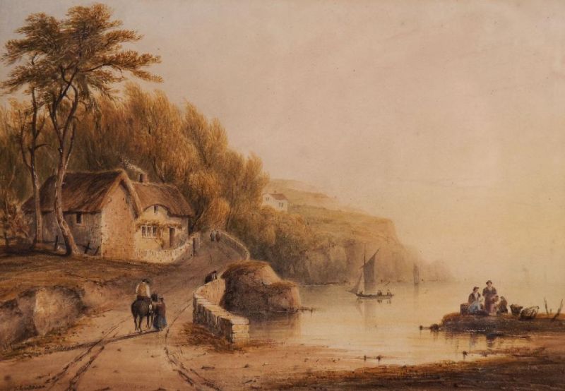 | Lee near Ilfracombe, Devon; a coastal landscape, figures on a shore in the foreground | |