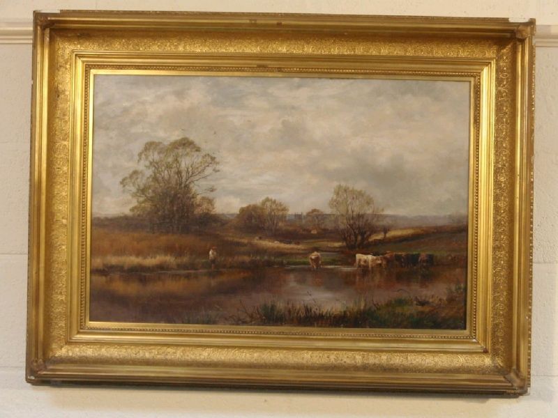 | Watering cattle and a boy fishing in a summer landscape, on the River Soar, Leicestershire | |