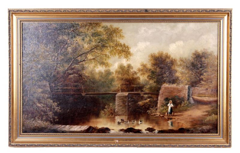 Figure collecting water by a bridge over a river (probably The Frome at Stapleton)
