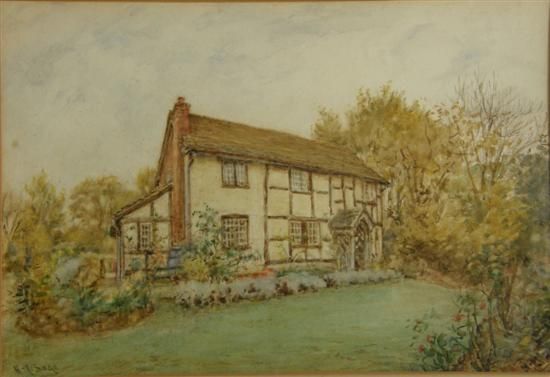 White timbered cottage and garden