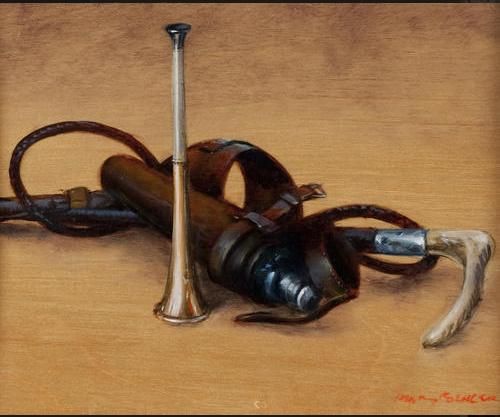 Horn, whips and flask