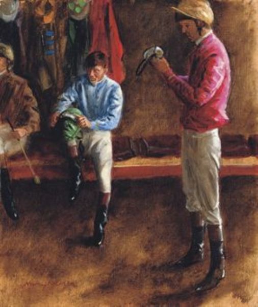 Jockeys preparing goggles