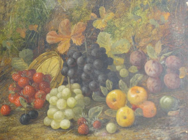 A Still Life of Grapes, Plums and Strawberries on a Bank