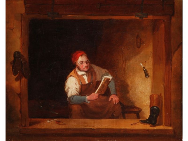 A cobbler seated at his shop window