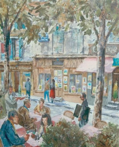 | Figures Outside a Cafe, Paris and Outdoor Cafe Scene, Montparnasse: Two | |