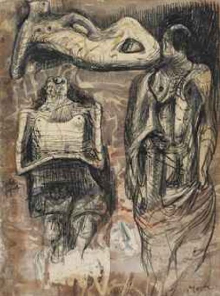 | Watercolor pen and India ink, colored wax crayons, pencil and white chalk on paper | |