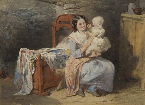 Mother and child within a cottage interior