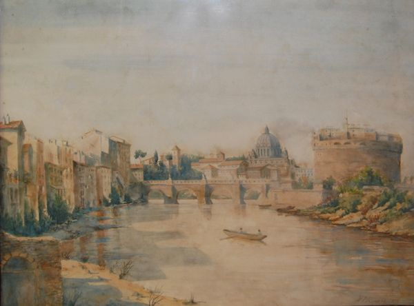 | Veduta del Tevere sullo sfondo di Castel Sant'Angelo e San Pietro, 1879 | |