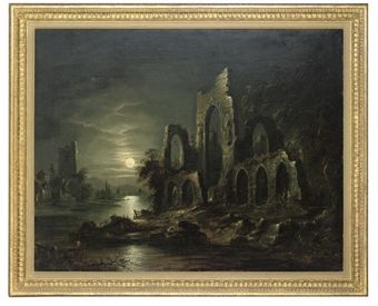 Ruined abbey by moonlight