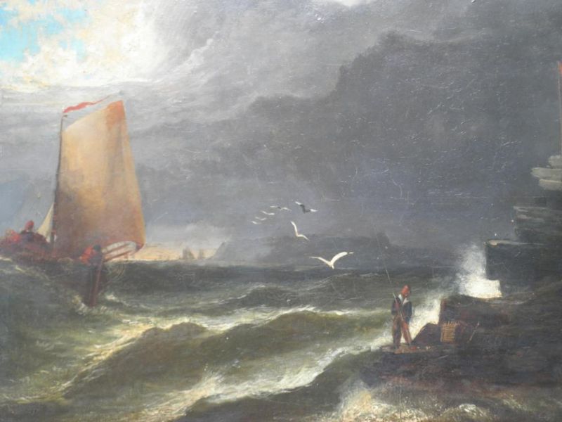 Coastal scene with fishing smacks
