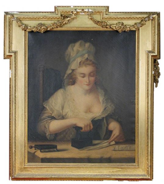| Portrait of a Maidservant in a Mob Cap pressing a Glove | |