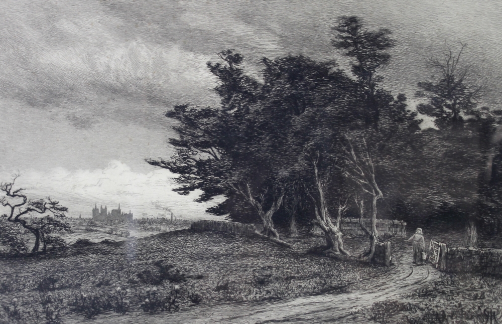 | Holywell near Peterborough, with the cathedral and smoking brickworks in the distance | |