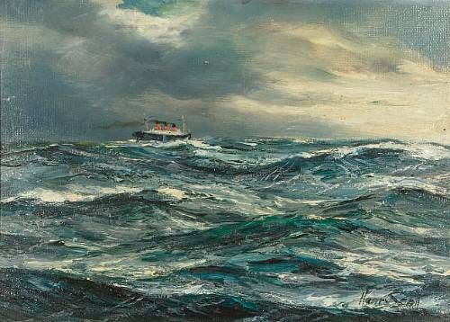 Funnel ship on squally waters