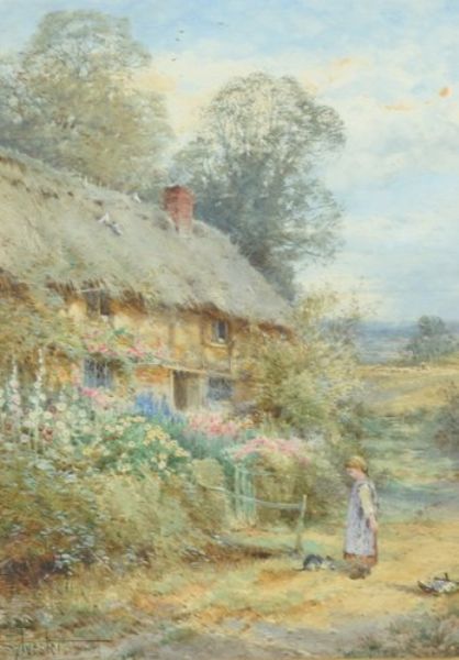 Cottage scenes with figures in the foreground