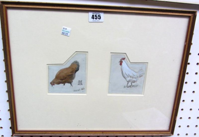 Brown hen; White hen